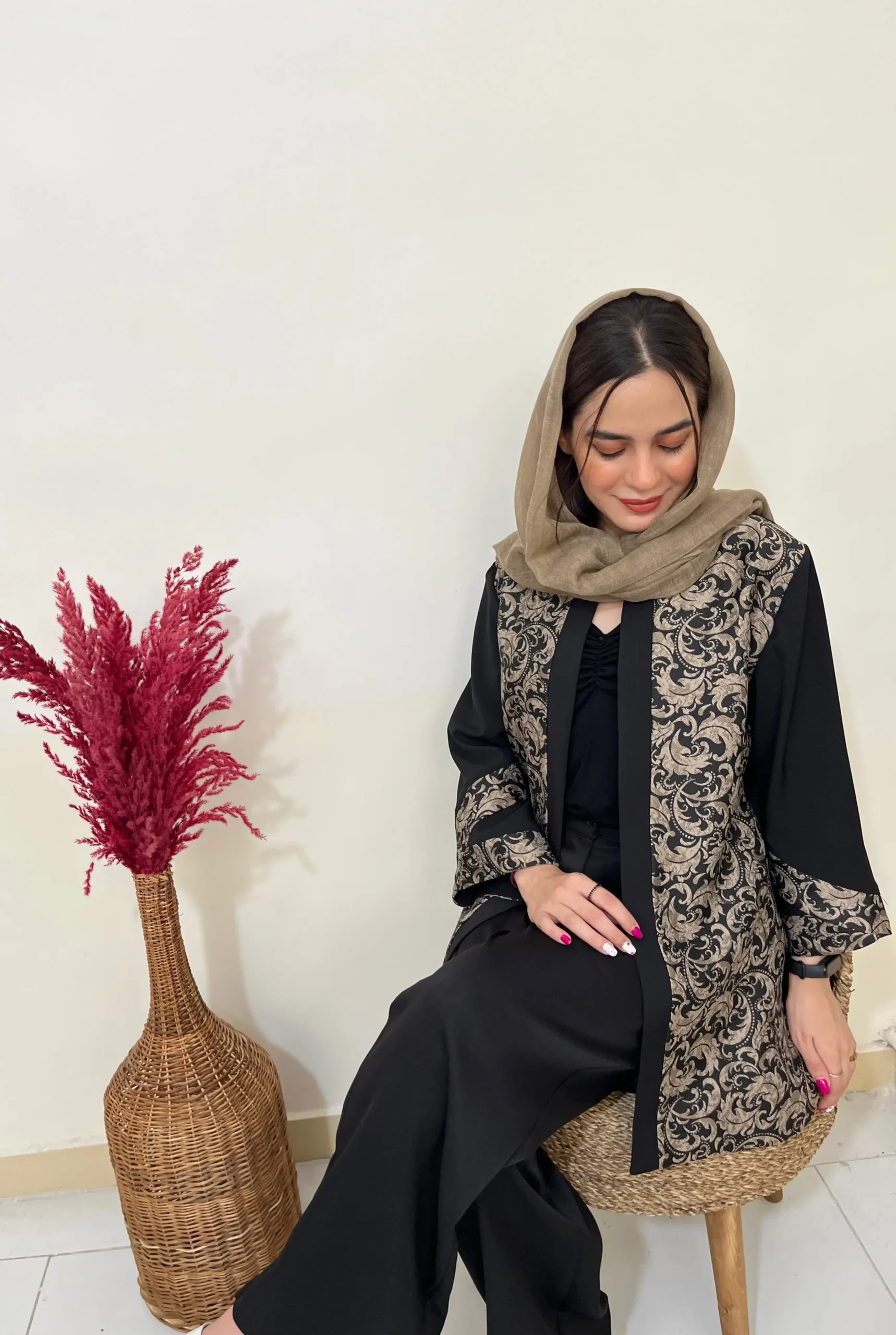 پشت کار پارچه ساده مشکی کار شده و طرح تافته جلوی کار را ندارد.